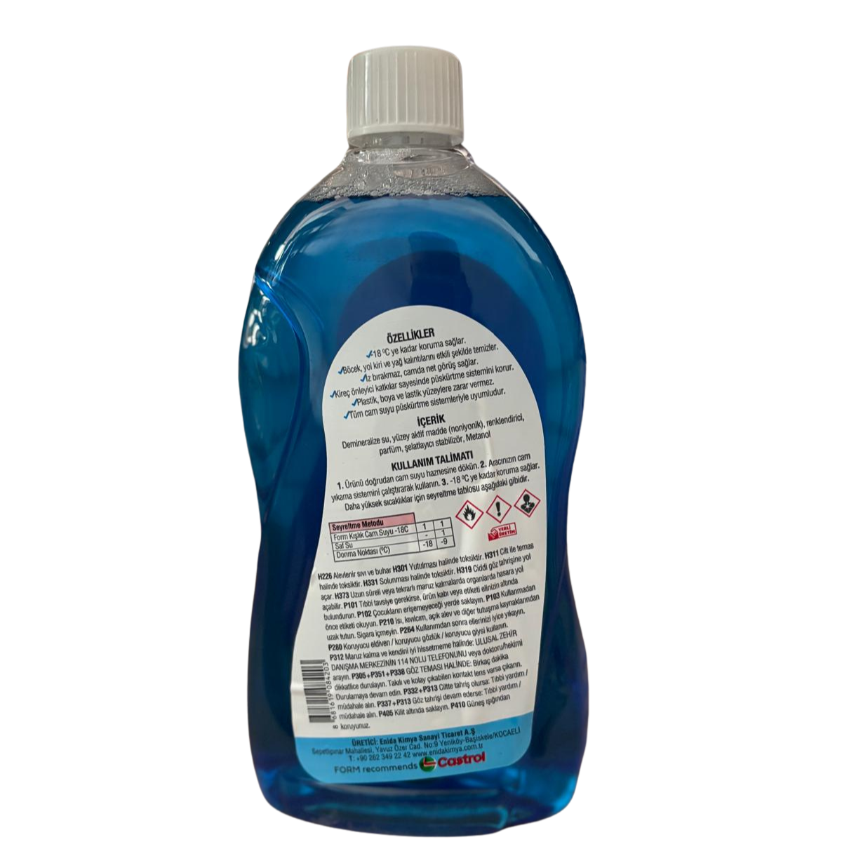 Antifirizli formülü ile düşük sıocaklıkta donmayan üstün temizleme formüllü.